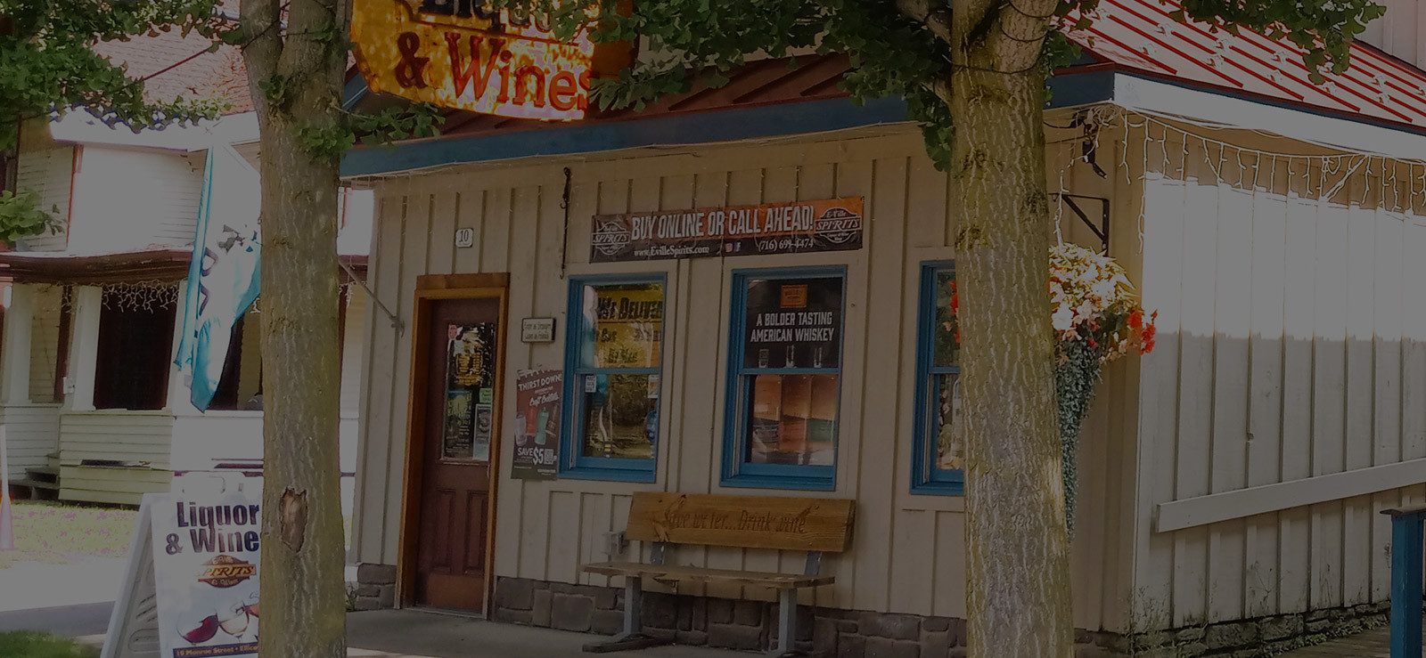E-Ville Spirts and Wine is located at 10 Monroe Street in downtown Ellicottville, offering in-store shopping and convenient local delivery.